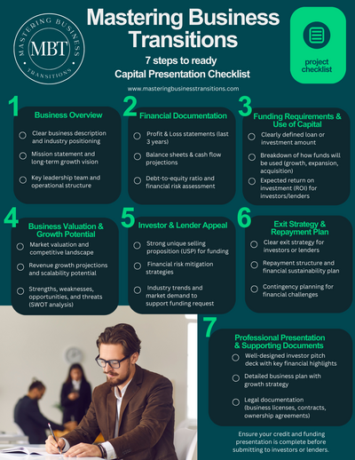 Finding the right funding is crucial for business growth and a successful exit. We help you secure business loans, structure funding packages, and attract equity investors with a strategic, lender-ready approach. Whether you're scaling or preparing to sell, we ensure you get the capital you need—on the best possible terms.
